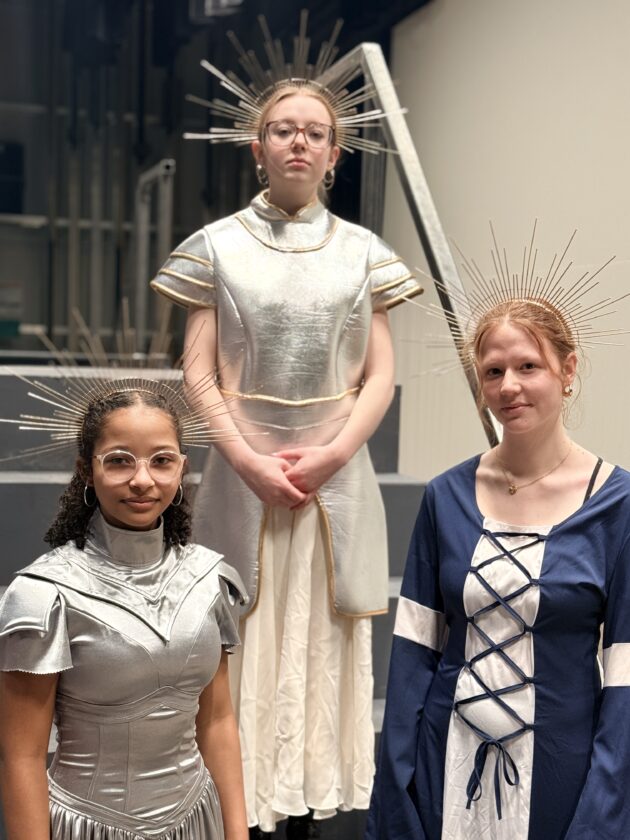 From left: Saint Margaret played by Josie Dawson, Joan played by Lillian Schenk, and Saint Catherine played by Eve Kushmail.
